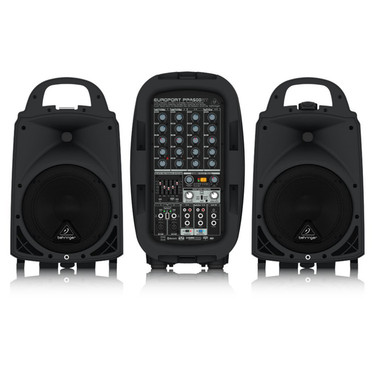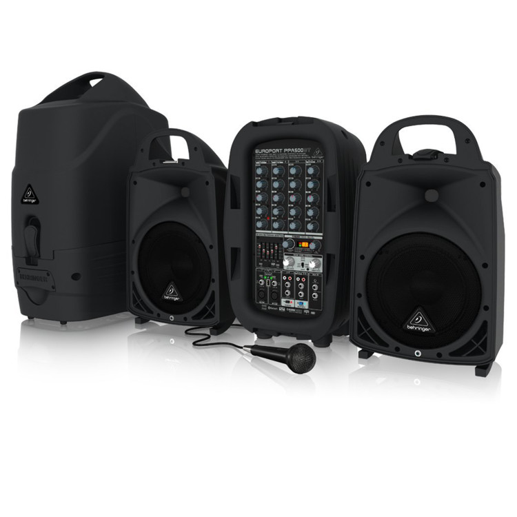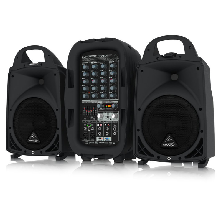 Size - 2.5'W x 5'L x 6'H Requires 1 electrical outlet Ultra-compact 500-Watt, 6-channel portable PA system. Perfect for parties, schools, corporate and educational presentations, seminars, aerobics, auctioneers, working musicians, tour guides, weddings, etc. Enormous power, incredible sonic performance, and super-light weight means no more lugging around dead weight Extremely powerful 8'' woofers and 1.35'' aluminum-diaphragm compression drivers for incredible sound reproduction Connect your iPod, iPhone, iPad* or any other MP3 player via Bluetooth*