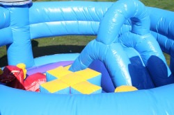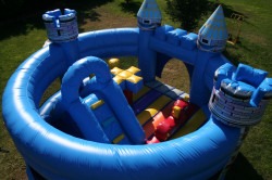 We have one of the most beautiful castle bounce houses available anywhere. The inflatable bouncer is complete with small slides and pop-ups.