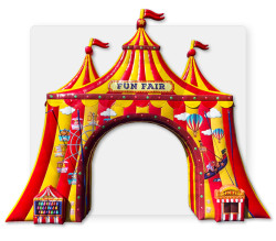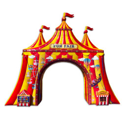 Step right up to our breathtaking Circus Carnival Arch, a magnificent and iconic centerpiece. Adorned in vibrant shades of red and yellow, this arch stands as a beacon to greet visitors with open arms to a realm of joy and thrills at every carnival gathering. With its impressive design and energetic aura, our carnival arch guarantees an unforgettable experience for all who enter its welcoming embrace.