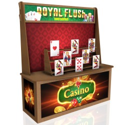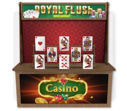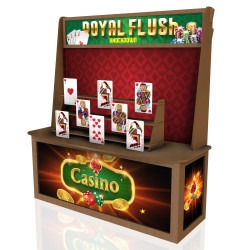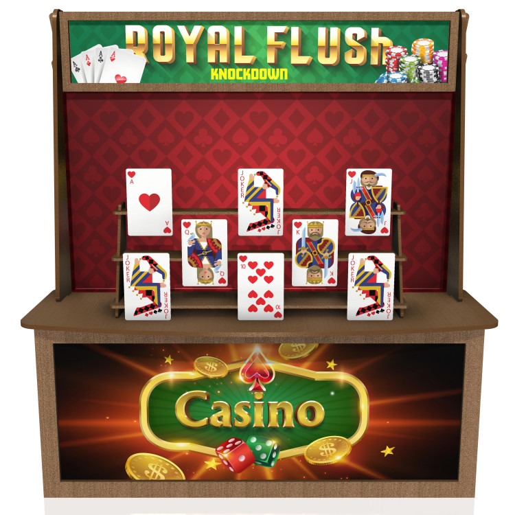 Indulge in the electrifying rush of our Royal Flush Knockdown, where your precision and skill will be put to the test as you aim and launch hacky sack balls with pinpoint accuracy at the meticulously arranged ROYAL FLUSH cards, toppling them one by one. Brace yourself for a heart-pounding experience like no other.