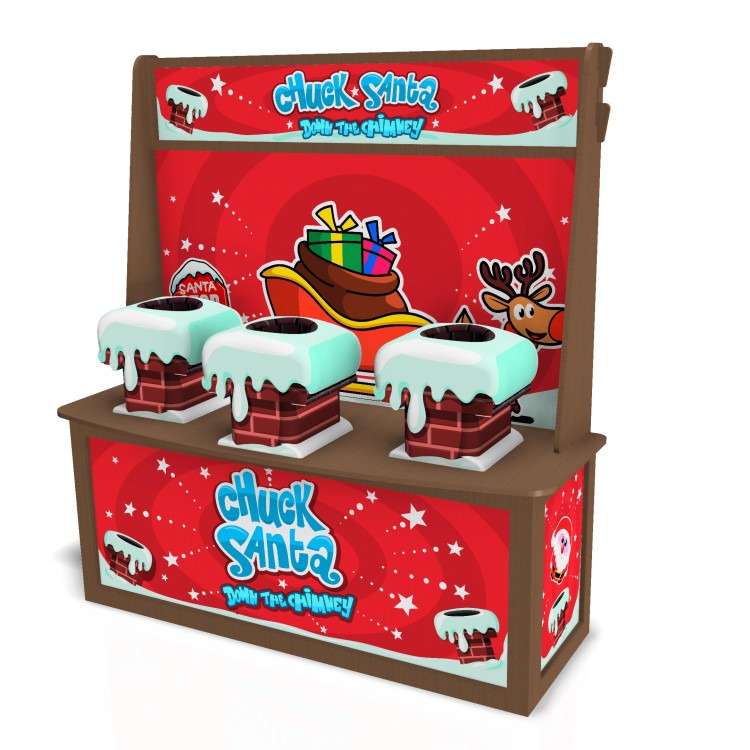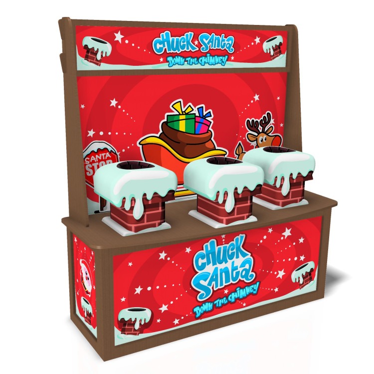 Get ready for holiday hilarity with Chuck Santa, a premium wooden carnival game that will bring laughter and excitement to your Christmas parties, winter festivals, corporate events, and school celebrations! Players take turns tossing soft bean bags in Santa's chimney.