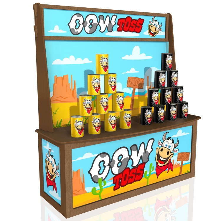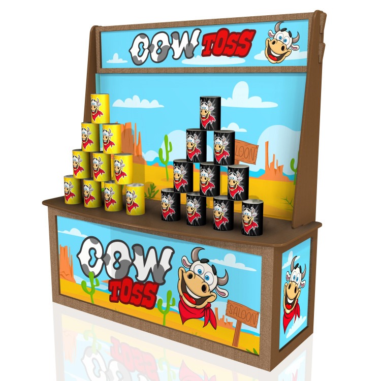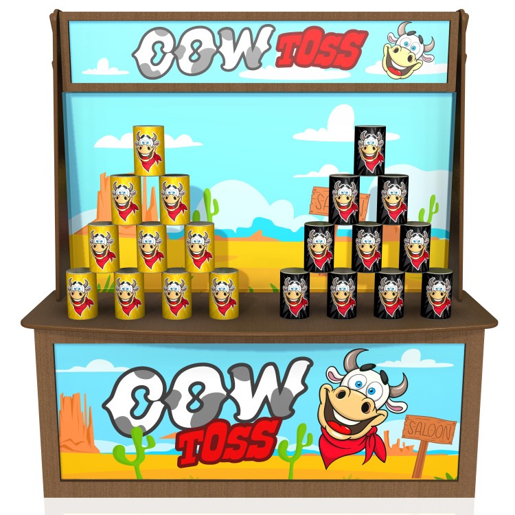 The Cow Toss Can Mash is a Western-themed carnival game rental that brings fun and excitement to any event. This interactive game challenges players to test their aim and accuracy in a classic Wild West showdown!