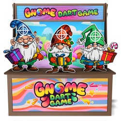 This game challenges players to aim and toss magnetic darts at a beautifully designed gnome-themed target board, perfect for holiday parties, winter festivals, corporate events, and school celebrations.