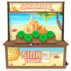 Bring the fun of the shore to your event with Sand Castle Toss, a premium wooden carnival game that captures the joy of building and playing at the beach! Perfect for beach parties, summer festivals, school events, and corporate gatherings, this game challenges players to toss ping pong balls to land in the castle towers and score points.