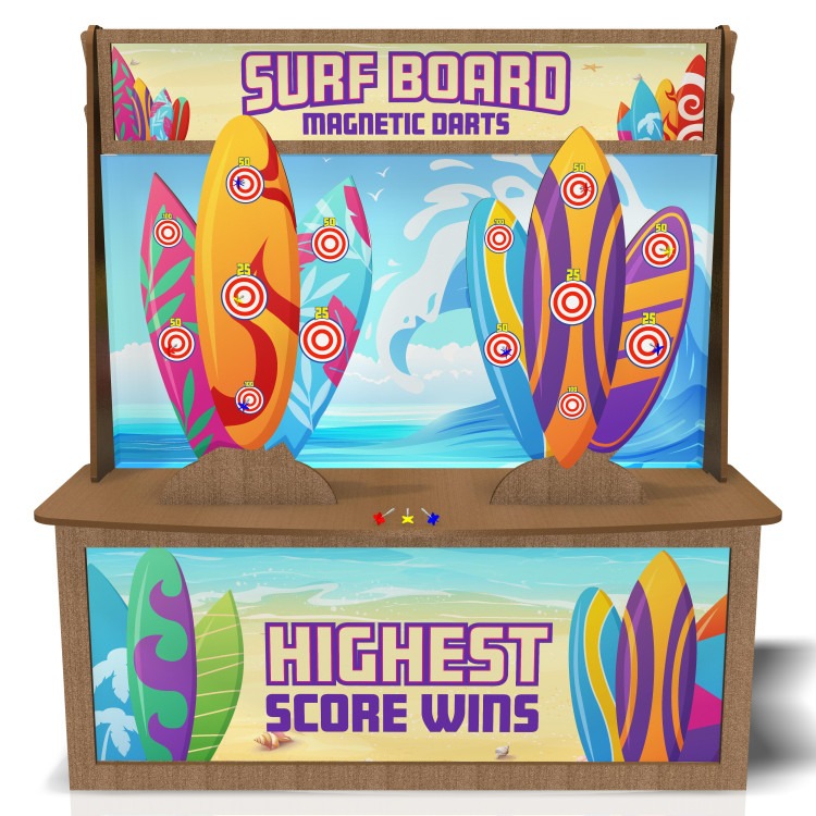 Surf Board Magnetic Darts Premium Wood Games 80"w x 84"h x