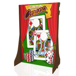 Experience the ultimate excitement of our incredible Casino Photo Stand-In. Prepare for endless laughter as you place your face through the perfectly crafted cut-out holes of the majestic King of Hearts and the captivating Queen of Diamonds. Reserve now!