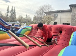 - OCCUPANCY: A maximum of 5-6 kids of equal size at one time for bounce houses, and 1 person at a time for slides is what most inflatable manufacturers recommend.