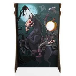 Step into the legend of Sleepy Hollow with our 4' x 8' Headless Horseman Photo Spot featuring 1 Cutout Hole! Perfect for haunted houses, Halloween events, and spooky attractions, this eerie backdrop lets guests become the infamous Headless Horseman for a chilling photo op.
