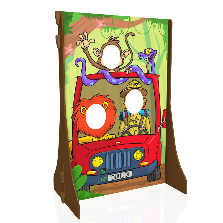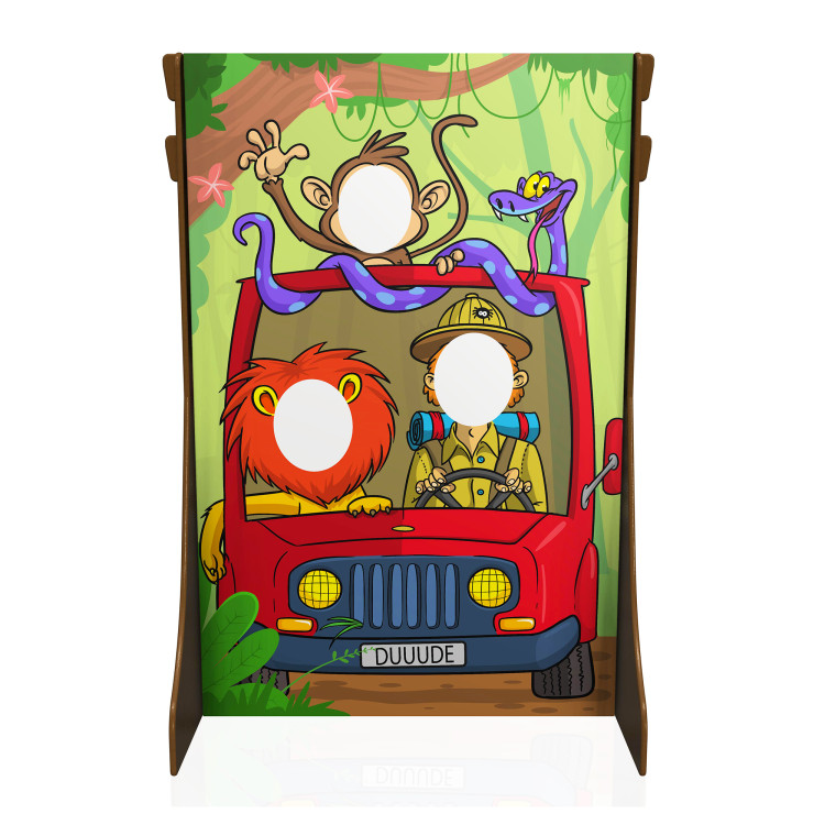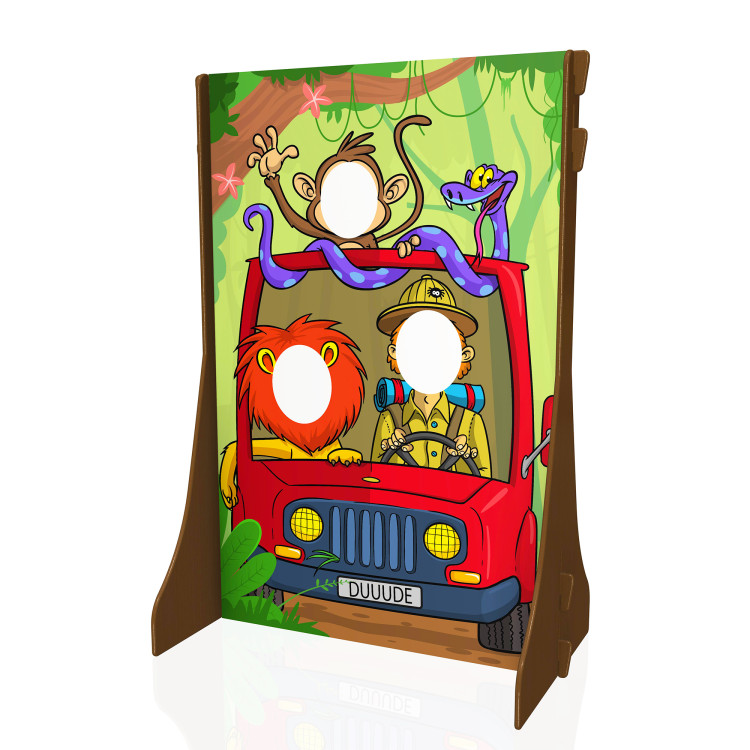 Experience the thrill of the wild with our captivating Jungle Photo Stand-In. Stick your face through cut-out holes of a cheeky monkey, majestic lion, and courageous safari guide for hilarious photo fun. Reserve now and unleash your inner adventurer!