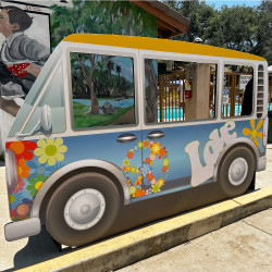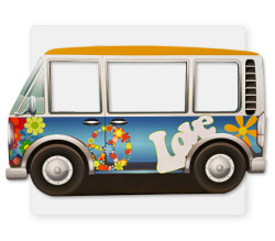 Capture the groovy vibes of the 70's with our peace and love Volkswagen bus photo stand! Strike a pose and snap some memorable shots in front of this retro-inspired photo backdrop. Perfect for adding a touch of nostalgia to any event or celebration. Peace, love, and picture-perfect memories await!